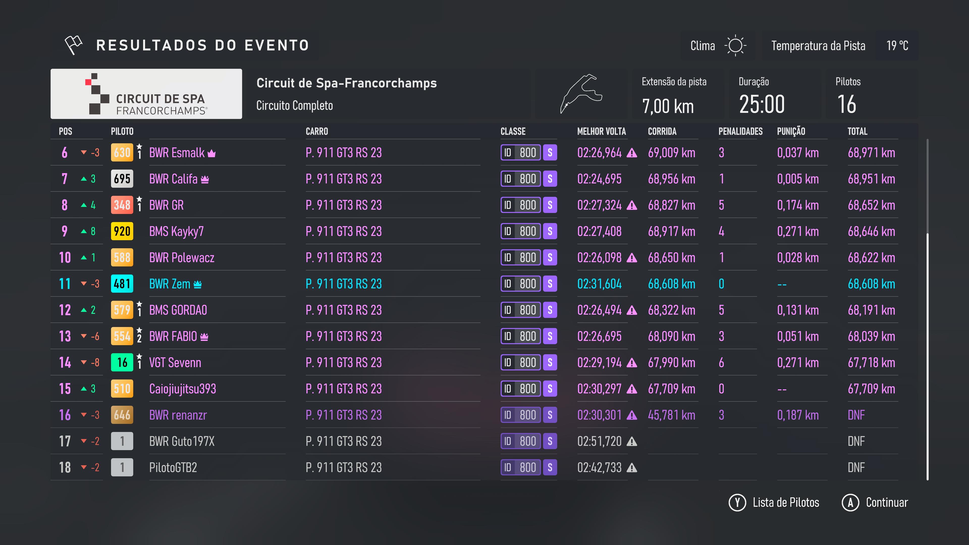 | P | Driver | Votes | Vehicle | Laps | Best Lap Laps | Time/Gap | PP | Pts | |