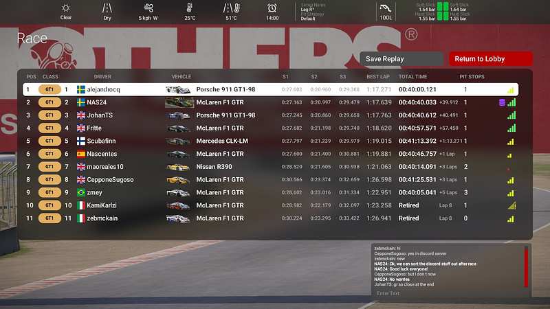 | P | Driver | Votes | Vehicle | Laps | Best Lap Laps | Time/Gap | PP | Pts | ||