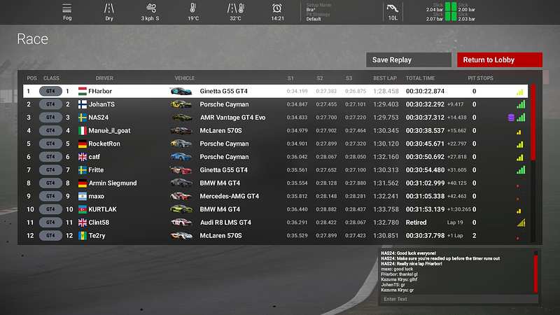 | P | Driver | Votes | Vehicle | Laps | Best Lap Laps | Time/Gap | PP | Pts | ||