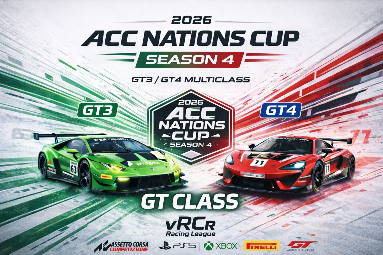 Arriva finalmente IL campionato multi-classe GT3/GT4 by vRCr Racing League su Assetto Corsa Competizione per piattaforma Console!