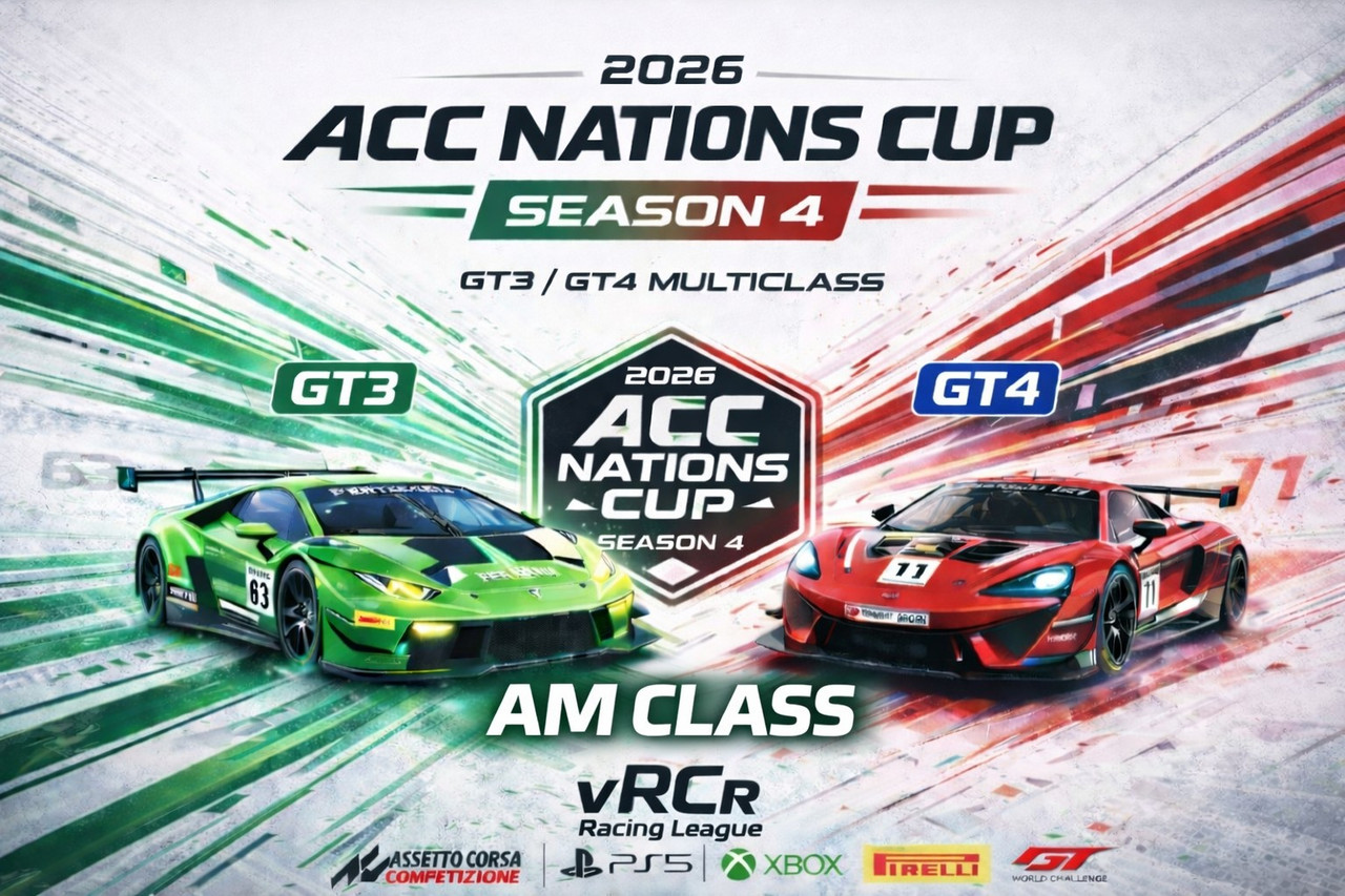 Arriva finalmente IL campionato multi-classe GT3/GT4 by vRCr Racing League su Assetto Corsa Competizione per piattaforma Console!