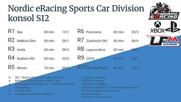 Dette er siden for Nordic eRacing ACC - Konsol's medlemmer, hvor man tilmelder sig ligaens løb.